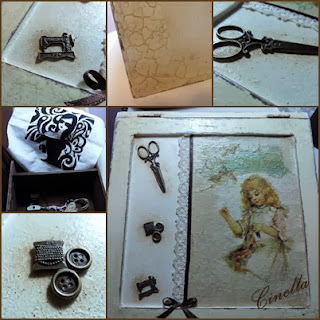 Ma megint egy jó hangulatú és igazán termékeny dekupázs tanfolyamon voltam. A mai anyag egy varrós doboz volt, amit én átneveztem hímzős doboznak. Én ugyanis a mindig aktuális hímzésemet, a fonalakat, és az ollómat fogom tartani. Mivel jelenleg Cintia lánykám fekete-fehér csajsziját hímzem, ezért most sok fonál nem lesz benne, de amikor olyan képen dolgozom, ahol sok-sok színből áll a minta, akkor nagyon jó lesz, hogy egy helyen lesz az összes.