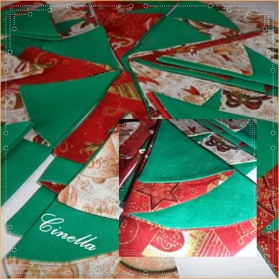 Ma nekiálltam és varrtam néhány fenyőt, ami már a karácsonyt kezdi idézni. Bár ezek a fenyők egytől egyig ajándékba készülnek, és még lesznek társaik. Szeretnék belőlük majd Cintia iskolájába is megrendezésre kerülő vásárra is néhányat.