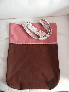 A másikat saját használatra, aminek viszont rövidebbre vettem a fülét, mert én elég mély növésű vagyok, és a lépcsőn leért a szatyi. Nem lett elég rövid. Vagy én vagyok nagyon mély, vagy a lépcsők túl magasak? Szóval a méretemen már nem tudok változtatni, (mármint a mélységemen, mert sajnos a szélességemen igen) ezért azt hiszem a következőnek még rövidebb lesz a fülikéje. A színe nem jön vissza, mert nagyon szép barna-rózsaszín párosítás.